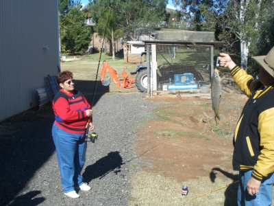 The weather did not look promising first thing Sunday morning. A quick phone call to John Fenato confirmed that the fishing day was still on. Meeting at McDonalds at Narellan, only a few brave souls turned up. I am starting to get the impression that it must not have rained back in 1955, 1956 and 1957 otherwise why the small turn out? With the boot packed with fishing tackle, beer and food we all headed off for the pleasant drive out to Theresa Park. A couple of more chevs met us out there - we parked the cars and set up our fishing lines. The day turned out a beaut, I even managed some sunburn. Plenty of fish to catch from the dam, enough to keep me interested anyway and I am not a fisherman! Top catch for males went for a 5.5lb carp. The kids all got a small prize each. I managed second at 4 lb and my partner, Glynnis was was awarded top female fisher-person with a 4.5lb beauty. A big thanks to John Fenato for organising the day and to our hosts, who have asked us back for another go. I will let the photos that follow tell their own story. |